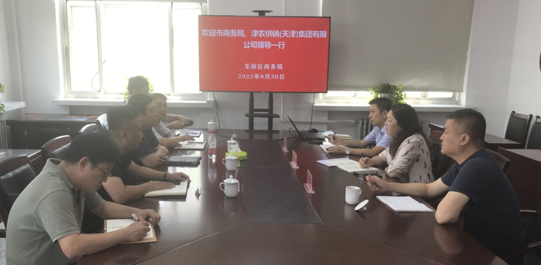 8月30日上午,天津市商务局市场建设处处长闫炳伟,津农供销(天津)集团有限公司党委书记、董事长郭琳等一行人员到东丽区调研并开展座谈交流。区商务局局长于莉丽、副局长刘扬,金钟街道办事处副主任于涛参加。