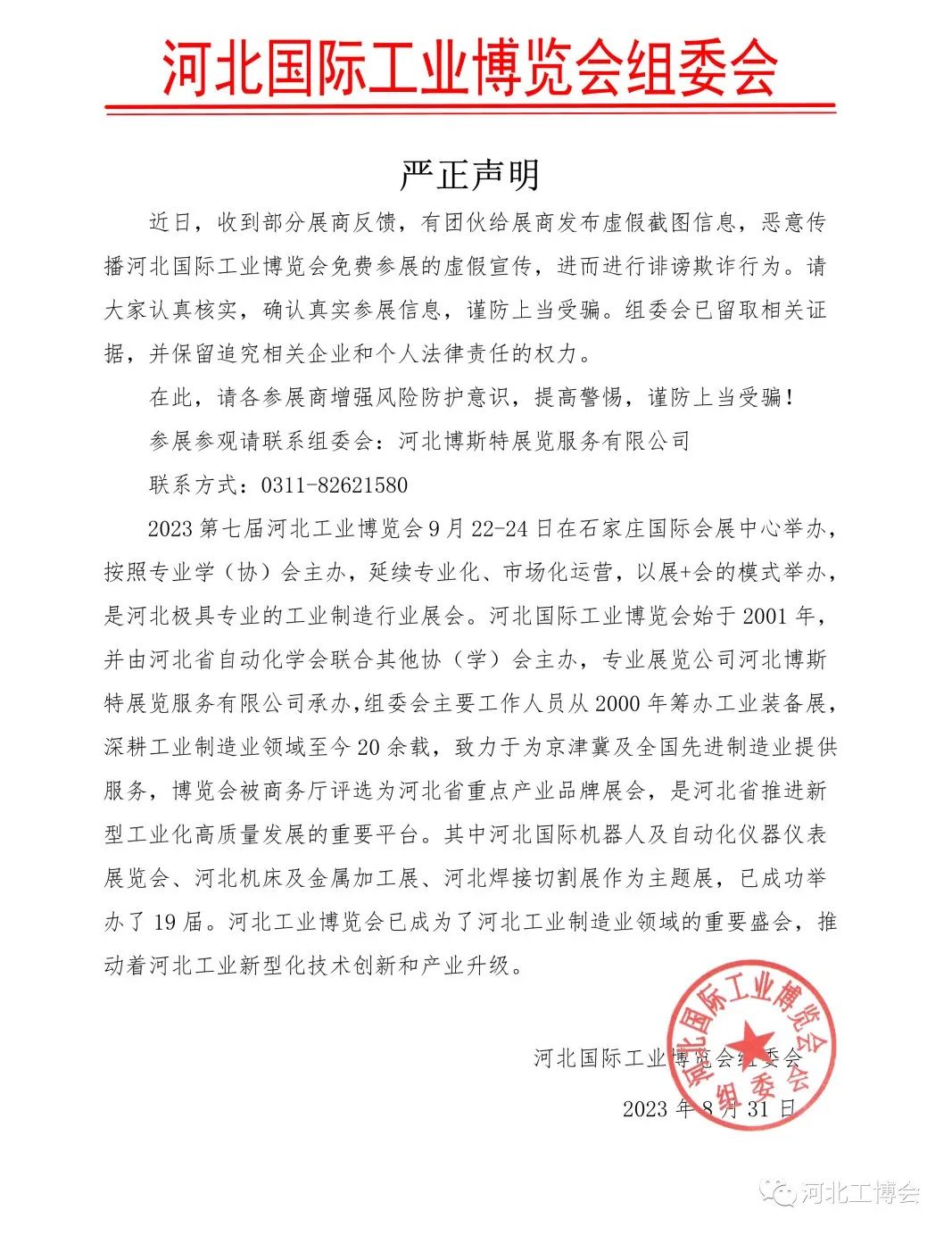 关于造谣河北工业博览会的严正声明