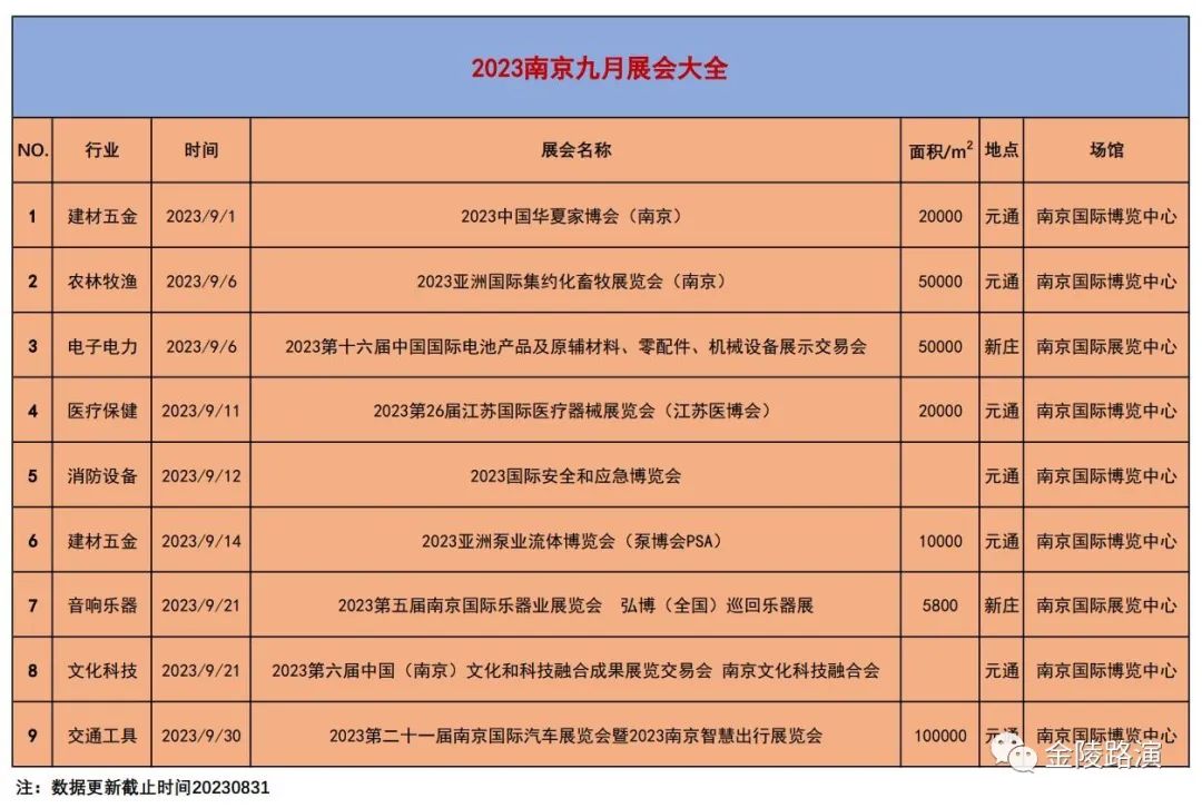 南京九月展会大全