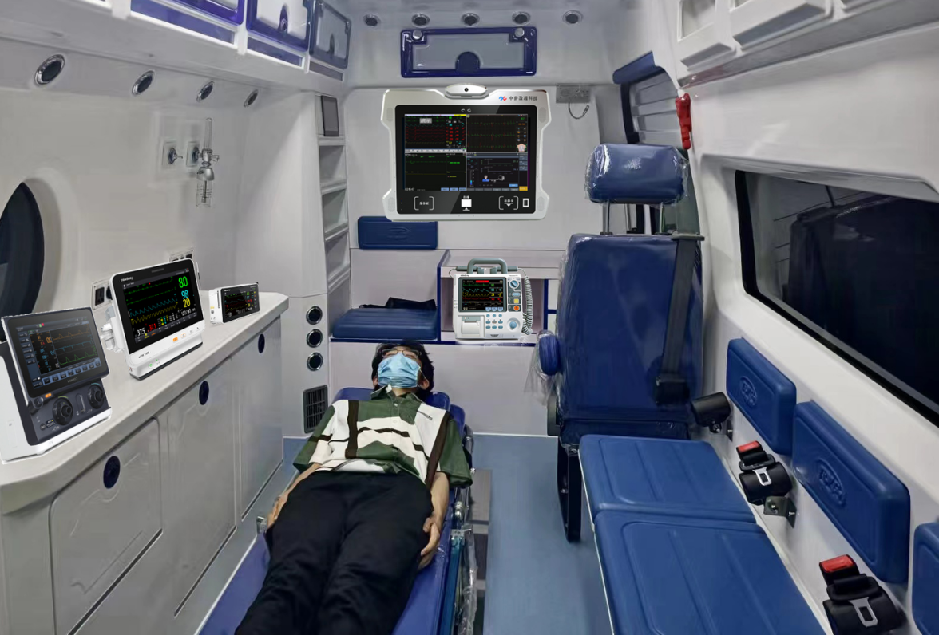 5G救护车是配备心电图机、除颤监护仪、呼吸机、彩超机的微型急诊室。5G智慧网关一体机支持和主流医疗设备实现接口对接,获取医疗设备采集的生命体征监测数据、影像检查数据等,并通过5G网络及时回传到接诊医院,与院内系统实现互联互通,有助于远端专家第一时间精准获悉患者病情,提供远程指导。