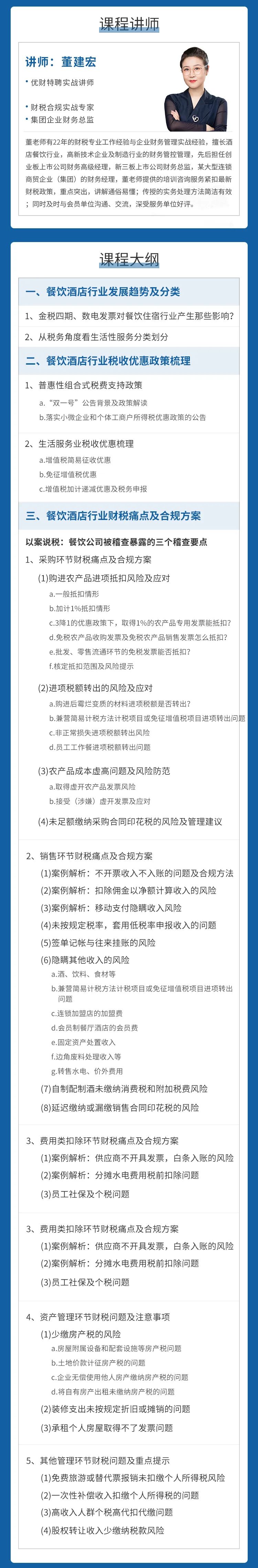 直播紧贴餐饮酒店行业新政,全部来源于企业实务,董建宏老师通过一线企业案例,提供给您非常实用、有价值的涉税风险应对技巧。