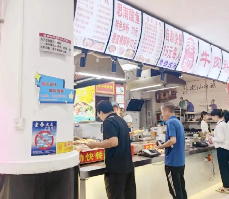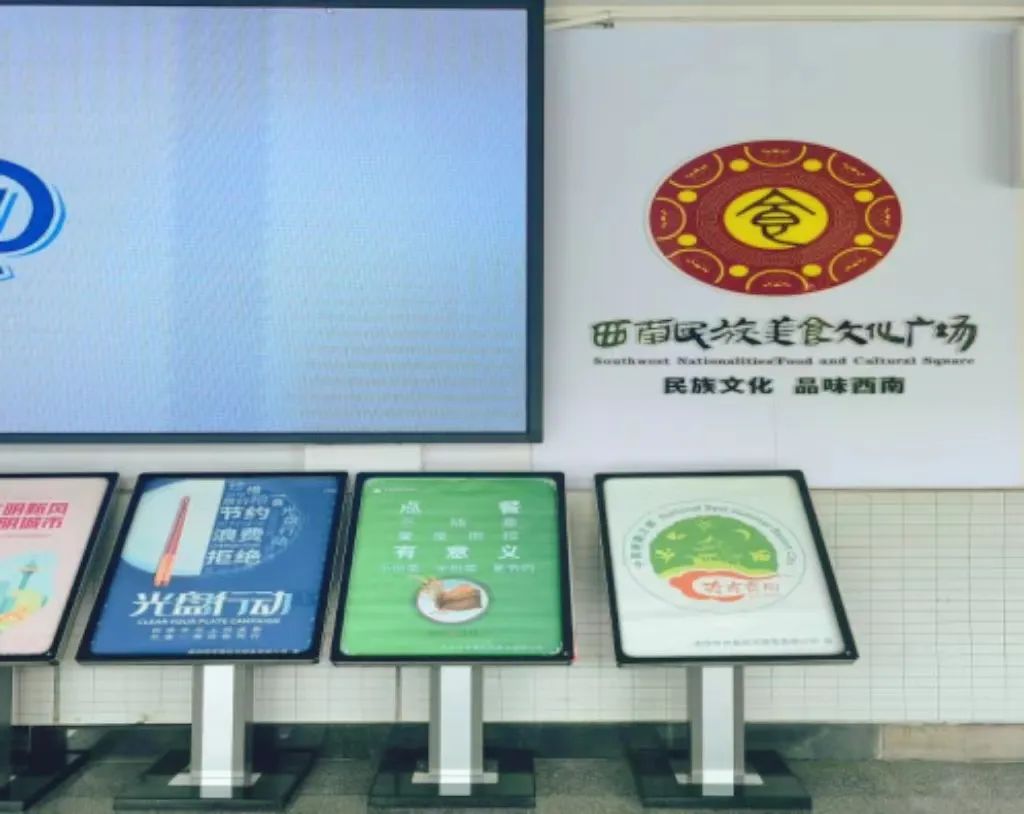 近期,机关服务公司在西南民族美食文化广场持续开展了反食品浪费的宣传引导工作,通过在服务台摆放宣传立牌、商户门头设置温馨提示、外环廊宣传栏放置宣传海报等方式,倡导文明节俭用餐,还设置用餐监督员,及时监督和制止餐饮浪费现象,形成节约用餐规范。在此,向广大机关干部职工、经营商户及就餐市民发出倡议:“用餐请点‘小份菜 半份菜 更节约’邀请在此就餐的顾客一道继续加入到厉行节约、反对浪费的工作之中,携手共同在厉行节约行动中充分发挥示范引领作用”。
