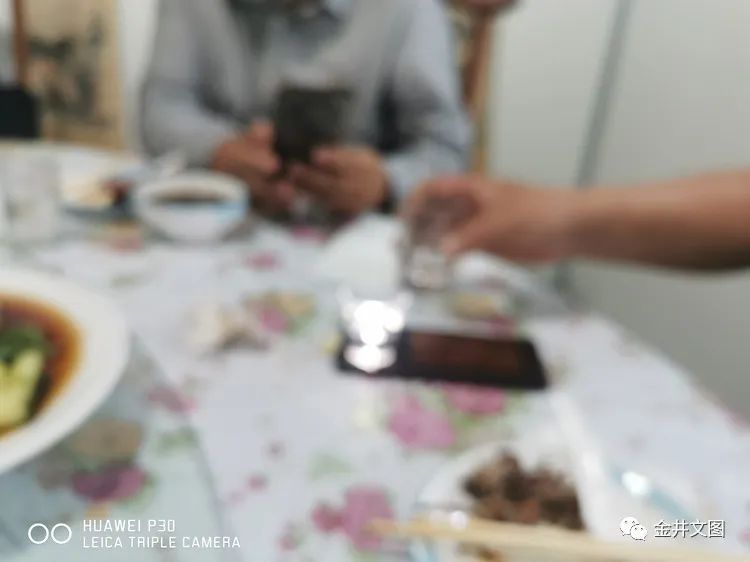 午间坐定,以待美酒。主人先取一瓶养生酒,一一斟杯,其色红而澄明,不妖不艳,美感十足,有客当即拍照以存。及至欲饮,口唇未至,酒香已入鼻息;啜饮小口,慢慢品咂,入口不辣,温润而醇厚,下咽有余香。边饮边听边叙,不觉大杯已尽。吾本不胜酒力,当下乘兴无碍。开启第二杯,斟来人参酒。少许多次,觥筹交错,你来我往,加深印象。酒酣耳热之际,兴之所至,或即席赋诗,或出口成诵,或朗读美文,或引吭高歌,座中人各展才艺。主人则取一小盅,演示如何验证纯粮酒:先斟半杯万福纯粮酒,后慢慢加入纯净水,只见杯中酒,从无色渐渐变蓝,成为一杯浅蓝色液体----成此颜色,方为纯粮酒;否则,非也。