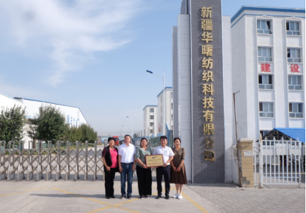 伊犁州服装(服饰)行业协会会长包晓英、执行会长时培才为新疆华曙纺织科技有限公司授牌。