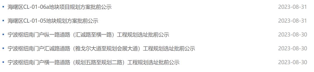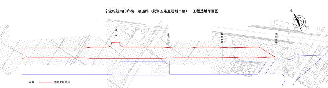 宁波枢纽南门户横一路道路(规划五路至规划二路)工程规划选址批前公示