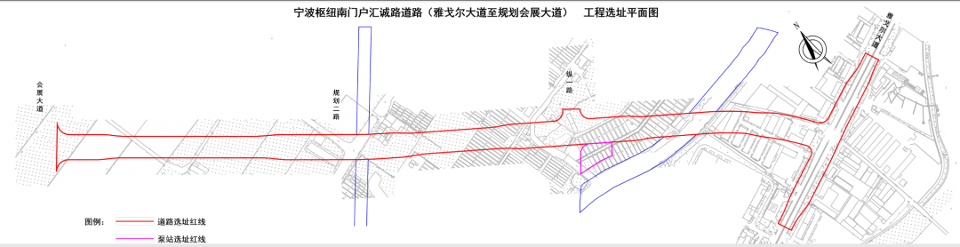 宁波枢纽南门户汇诚路道路(雅戈尔大道至规划会展大道)工程规划选址批前公示