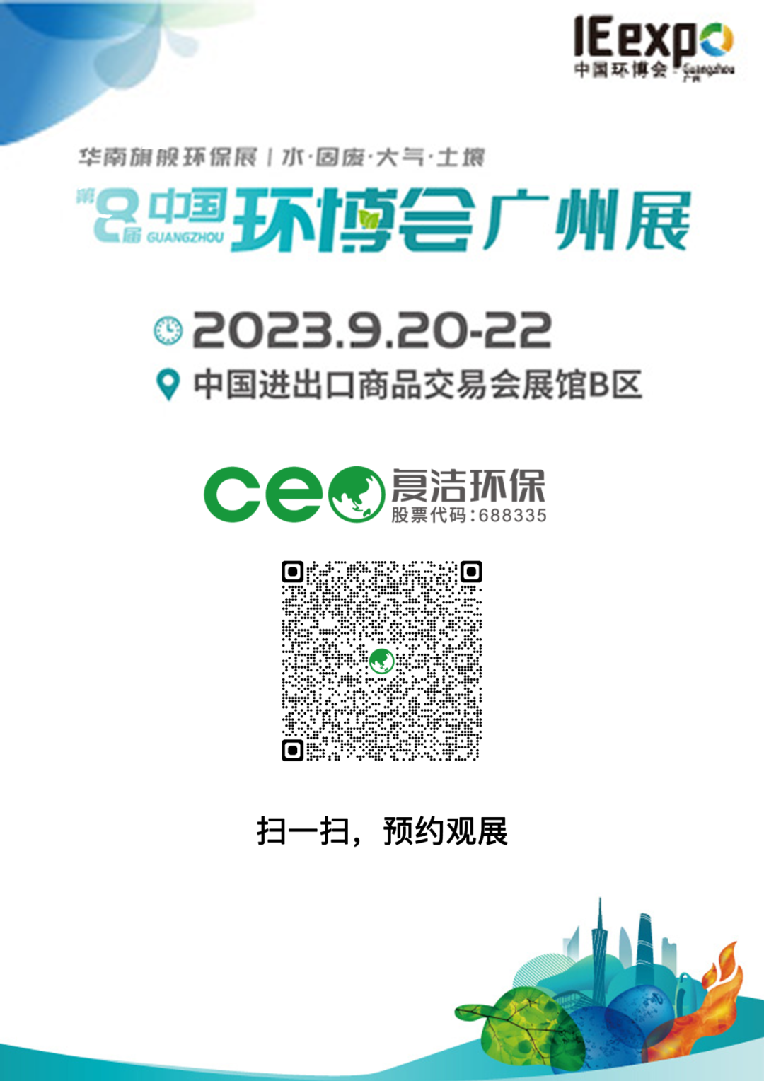 上海复洁环保科技股份有限公司(11.2号馆,C18展位)期待您的光临,让我们共同见证华南生态环境保护领域的繁荣与发展,共同为美丽的地球家园贡献力量!