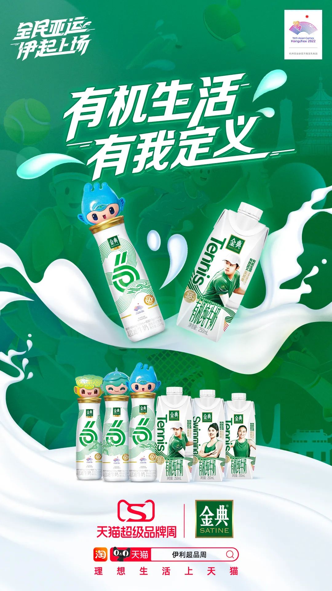 在打造一系列符合品牌基调的亚运定制装产品之后,伊利、金典、安慕希再借由“伊利天猫超级品牌周”这一活动为载体将其传递到更多消费者的所到、所见、所触之处,让品牌理念传播的更广、更远。