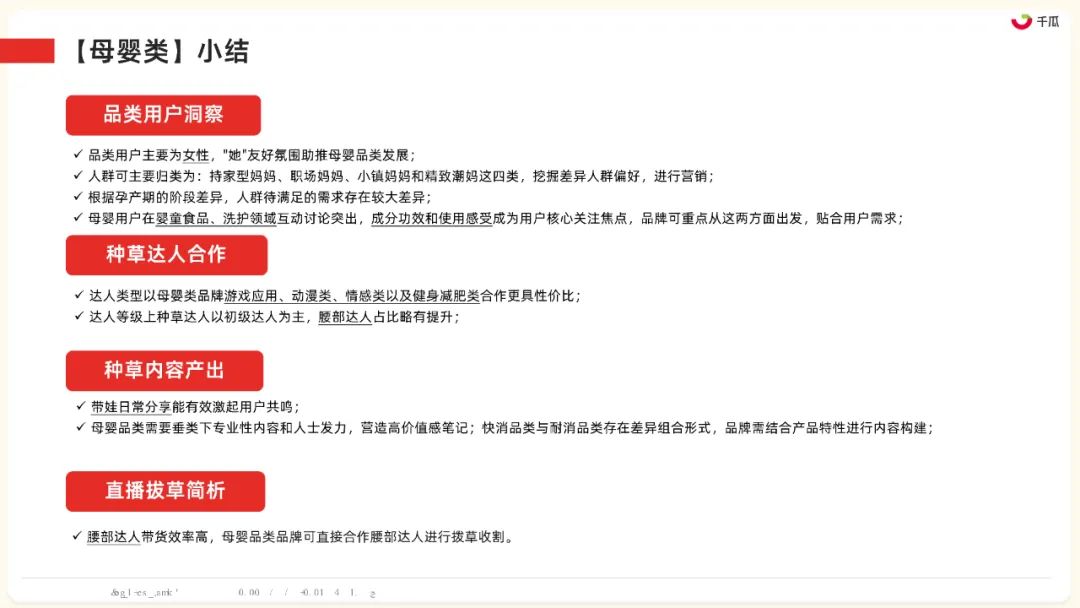 3️⃣ 母婴类:关注新生代妈妈的心理需求,家庭品牌需加强情感连接。调研显示,80%的小红书用户表示愿意付费参加母婴品牌举办的亲子活动。营销策略中,与用户建立情感联结是关键。