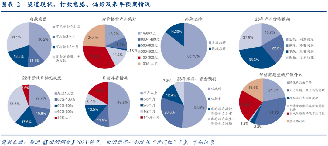 结论:三种情景下,预计春节大概率仍将边际累库,23H1大概率保持高库存运转、稳定批价的状态,其中周转较好的一线名酒有望保持良性状态,部分下调目标且渠道布局积极的小酒终端及渠道有望边际好转。