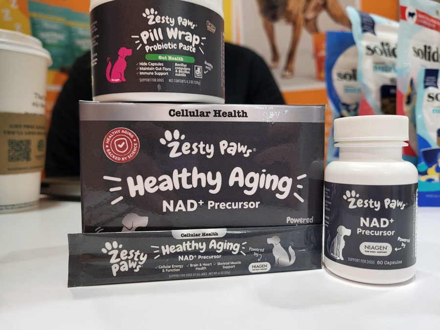 Zesty Paws 推出了最新的新产品。健康老龄化NAD+前体是一种专门为支持狗的代谢健康、细胞能量、骨骼肌健康和恢复以及大脑和心血管健康而开发的补充剂。Healthy Aging补充剂采用 Niagen® 配制而成,Niagen® 是一种经过临床研究的 NAD+ 前体,有助于支持细胞随年龄的变化。