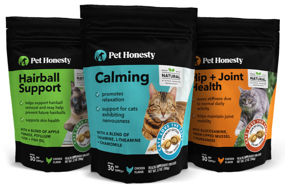 推出了外脆内软的猫粮,共有五种功能品种:多种维生素、毛球支持、髋关节健康、镇静支持和赖氨酸免疫支持。