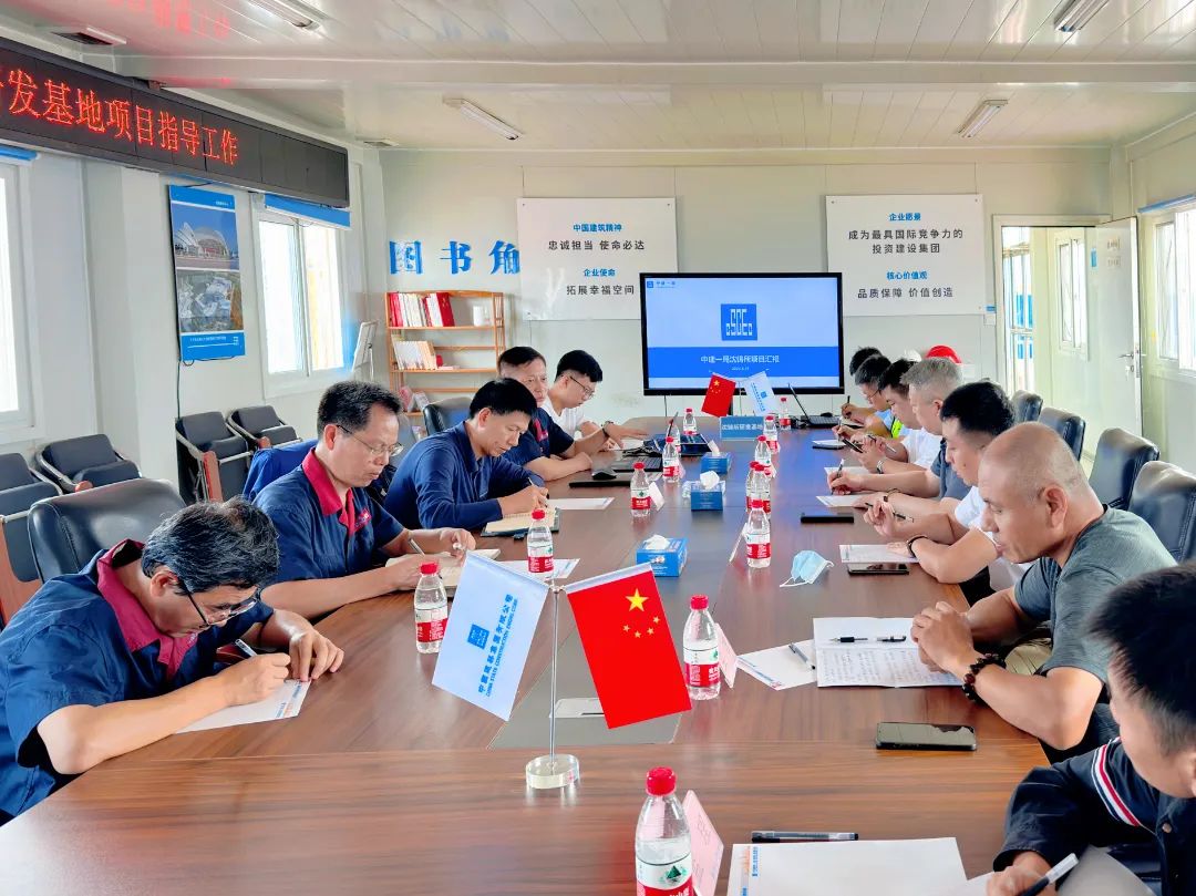 王晓琦围绕中建一局的企业文化、项目组织架构、项目形象进度和项目重要节点施工安排等内容作详细汇报。