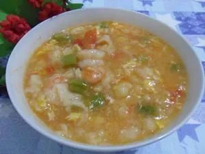 土豆:50克、猪肉:15克、大虾:30克、燕麦:10克、大米:50克、玉米面:30克