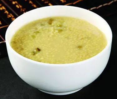三彩蛋饼、清炒小油菜、小年糕、咸粘粥