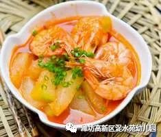 甘蓝粉丝炒鸡蛋、冬瓜炖大虾、热狗、八宝粥