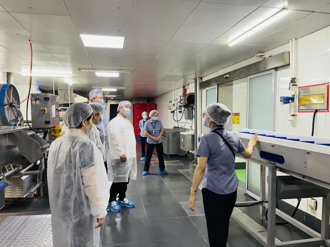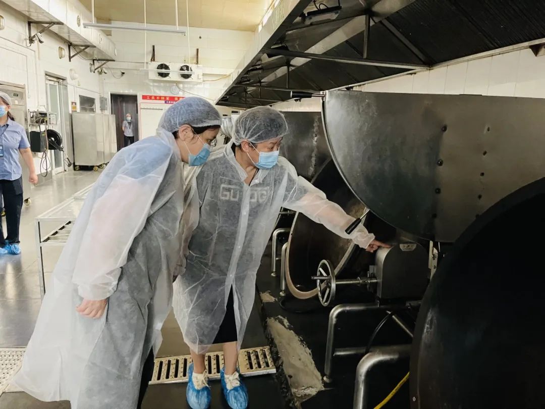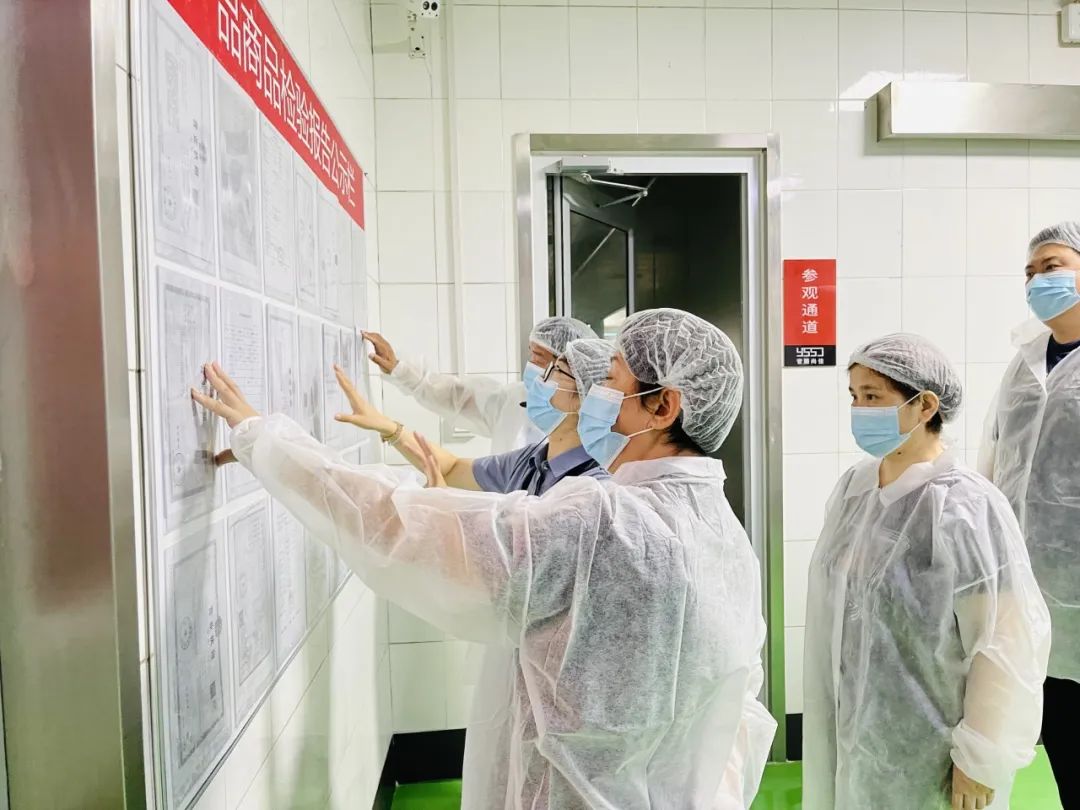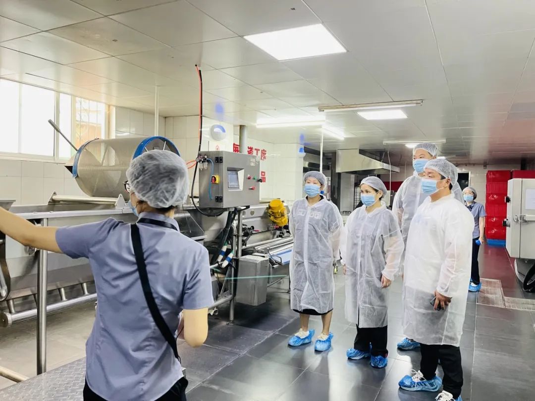 在配餐公司负责人的带领下,学校对配餐公司的食品加工间、原料仓库、留样室等场所进行参观,对配餐的整个生产过程、餐饮原料的采购、加工过程管理、品质监控的情况各个环节进行了全面检查和细致指导。配餐公司严格的管理制度、科学的操作流程和整洁的卫生环境获得了大家的认可。