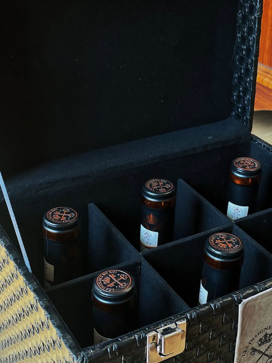 国王徽章老藤独占园黑标干红六支品牌定制皮盒