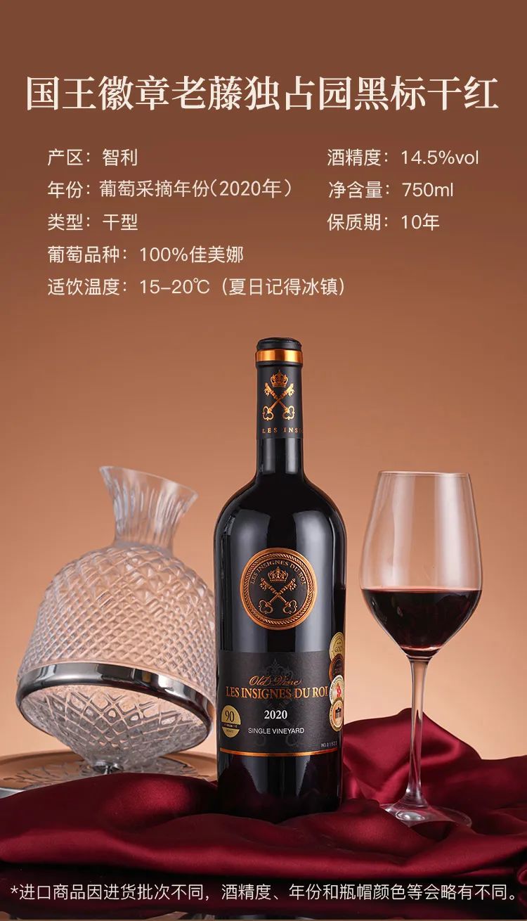 【智利原装进口】国王徽章老藤独占园黑标干红六支品牌定制皮盒750ml*6瓶,由50年树龄的老藤佳美娜所酿的精华之酒6项国际荣誉“姜还是老的辣”每一口都是都是非凡享受