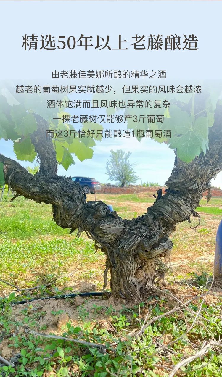 纯手工采摘50年的老藤佳美娜所酿的精华之酒