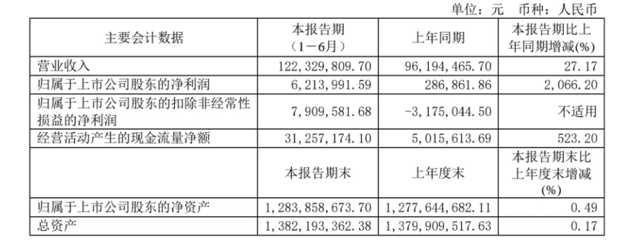 8月22日,中葡股份发布上半年业绩报。上半年实现营业收入1.22亿元,较上年同期增长 27.17%;归属于上市公司股东的净利润621.40万元,较上年同期增长2066.20%。公司葡萄酒产品上半年实现销售收入约1.18亿,比上年同期增长31.82%;疆外地区实现葡萄酒产品销售0.81亿,较上年同期增长63.11%。