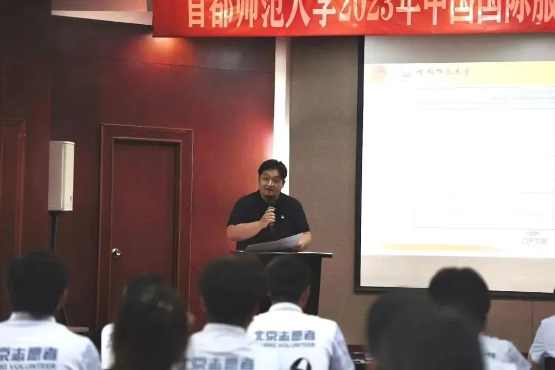 首先校团委实践部部长陈越介绍了本次服贸会志愿者招募及培训情况。