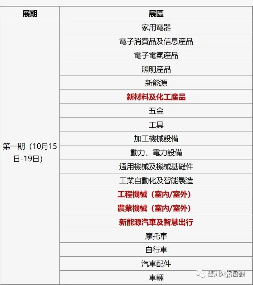 广交会各展期对应展区设置情况表如下: