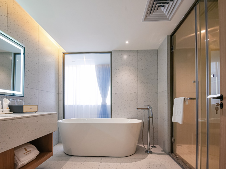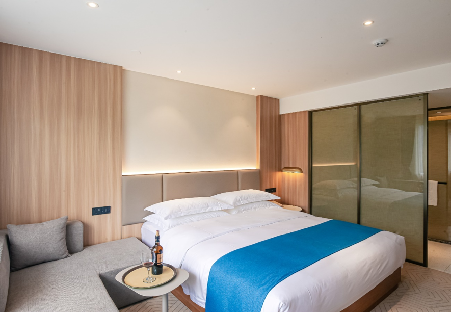 房间可用易耗品,洗护用品采用的是英国莱想品牌,我们的一次性拖鞋采用的是5毫米防滑鞋底和珊瑚绒面料。智能门锁采用的是中国驰名品牌杨格门锁,给客户提供安全保障是客人在店需求的第一位。