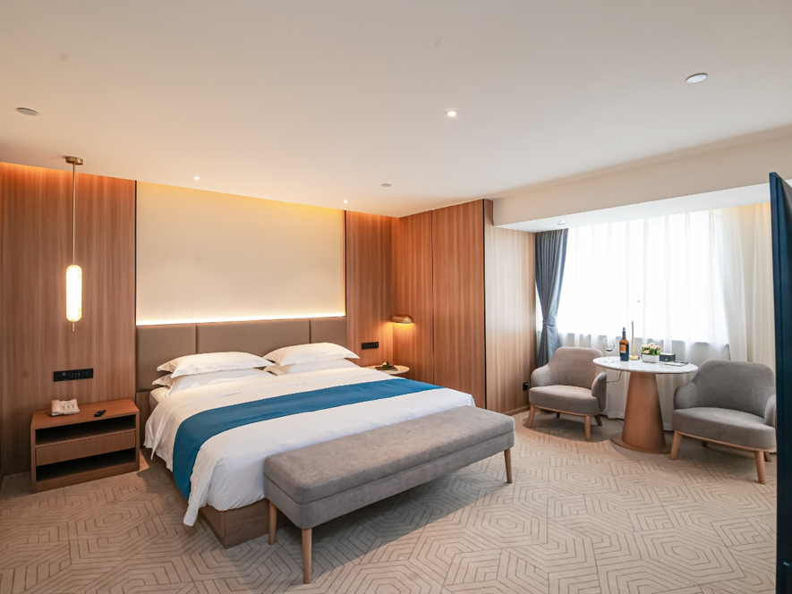 所有山景房间最大的亮点就是窗外是风景秀丽的小洪山风景区,清晨醒来,初升的太阳在山顶缓缓升起,一抹晨光透过纱帘斜射入房间;黄昏的时候站在窗前可以远眺山景,夕阳的红和草木的绿相映成趣,呼吸一口天然氧吧的清新空气,可以消除一天的疲惫。