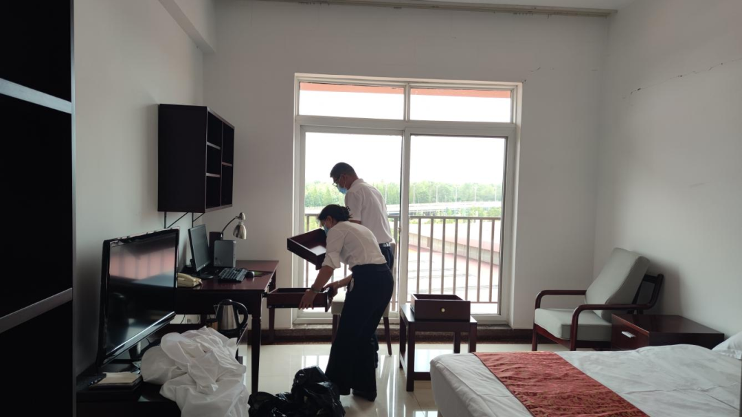 7-8月份,省委党校校内进行装修改造,但因客房装修和设施设备进场时间延迟,截至8月28日,客房内的设施设备组装及清理工作未能正常开展,为确保省委党校9月1日顺利开学,开学期间各项工作稳步有序开展,酒店餐饮分公司在时间紧任务重的情况下,立即组织开展党员突击队“攻坚克难抢工期”活动。活动由酒店餐饮分公司党支部副书记、支委委员彭丽芹带队,全体党员干部职工同心协力、加班加点、攻克难关。