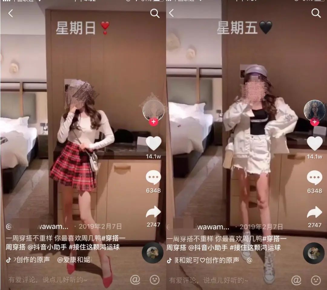 这类视频主要是通过形成反差的形式,展示选品搭配,突出商品。比较常用的剧情是素人改造,通过改造前后的对比吸引粉丝。