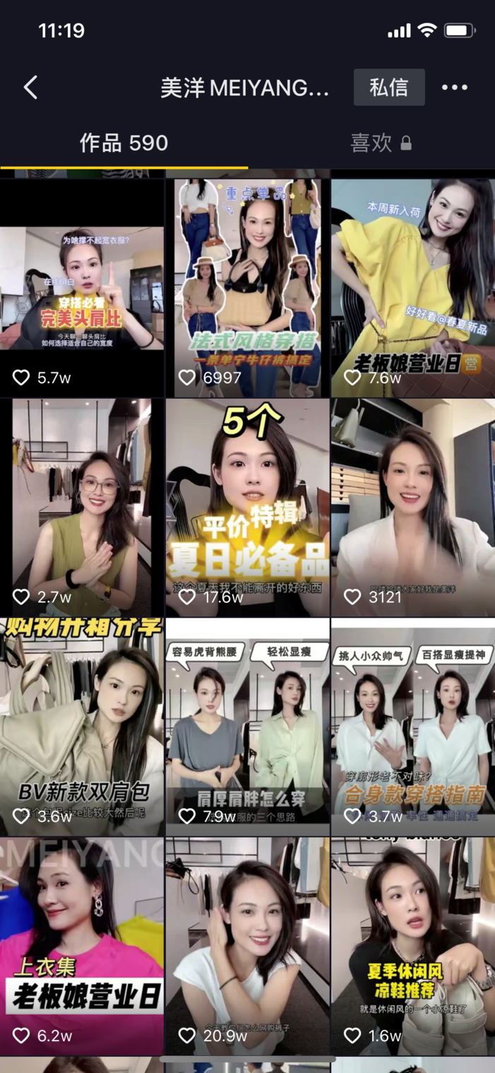 相比起普通服装店主上千万的粉丝,大品牌还没有完全把抖音当做主战场。