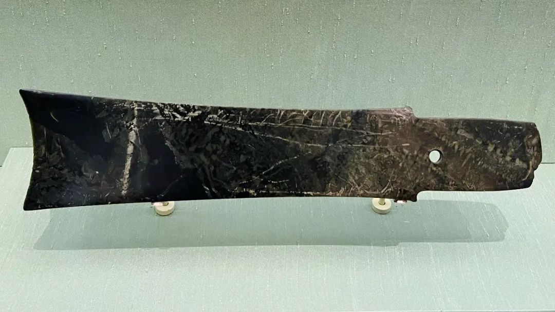 璋是一种长条形的片状礼器,外观很像戈形兵器。近内处两侧有突出鉏牙的称为牙璋。《周礼·典端》载:“牙璋以起军旅,以治兵守。”但从考古出土的情形看,它还可能是祭祀山川的祭器或举行重大仪式时手持的礼器。璋始见于新石器时代晚期龙山文化,夏、商时发现较多,西周以后衰落。