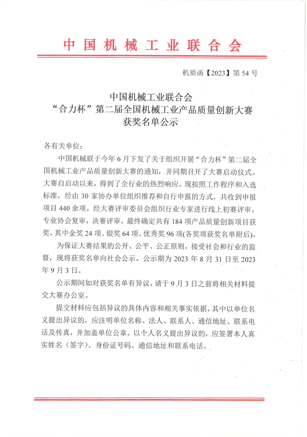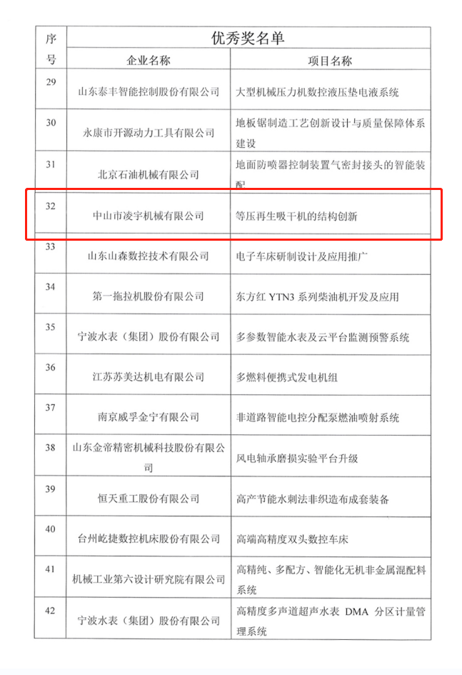 凌宇申报的“等压再生吸干机的结构创新”和“压缩热分流技术应用”两个项目,经行业专家线上初赛评审、专业协会复审、决赛评审等,在400余个项目中脱颖而出,荣获第二届全国机械工业产品质量创新大赛优秀奖。凌宇一直注重技术创新,通过技术推进产品质的有效提升和量的合理增长,提升企业的核心竞争能力。全国机械工业产品质量创新大赛中国机械联于2023年6月下发了关于组织开展“合力杯”第二届全国机械工业产品质量创新大赛,按照工作程序和入选标准,经由30家协办单位组织推荐和自行申报的方式,共收到申报项目440余项。经大赛评审委员会组织行业专家进行线上初赛评审,专业协会复审,决赛评审,最终确定共有184项产品质量创新项目获奖,其中金奖24项、银奖64项、优秀奖96项。本次大赛以“新征程 、高质量 、创未来”为主题。大赛旨在通过联合各方力量,搭建政府指导、行业服务、企业主体、社会参与的机械工业产品质量创新平台,以此推选一批技术先进、一致性好、可靠性水平高、产品适应性强的自主创新优质产品和优秀企业,进行广泛宣传推广和推荐,满足不断升级的市场需求,推动机械工业质量提升,尽快实现高质量发展。来源:凌宇投稿 合作推广您有什么不同的看法,欢迎留言进行交流!