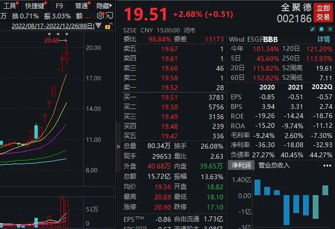 二级市场的表现上,公告称,自12月16日至12月26日,公司股票价格涨幅为76.24%,累计换手率为81.56%。截至今日收盘,公司股票收盘价格为19.51元/股,公司股票价格短期波动幅度较大,同时公司基本面未发生重大变化,请广大投资者理性投资,注意风险。