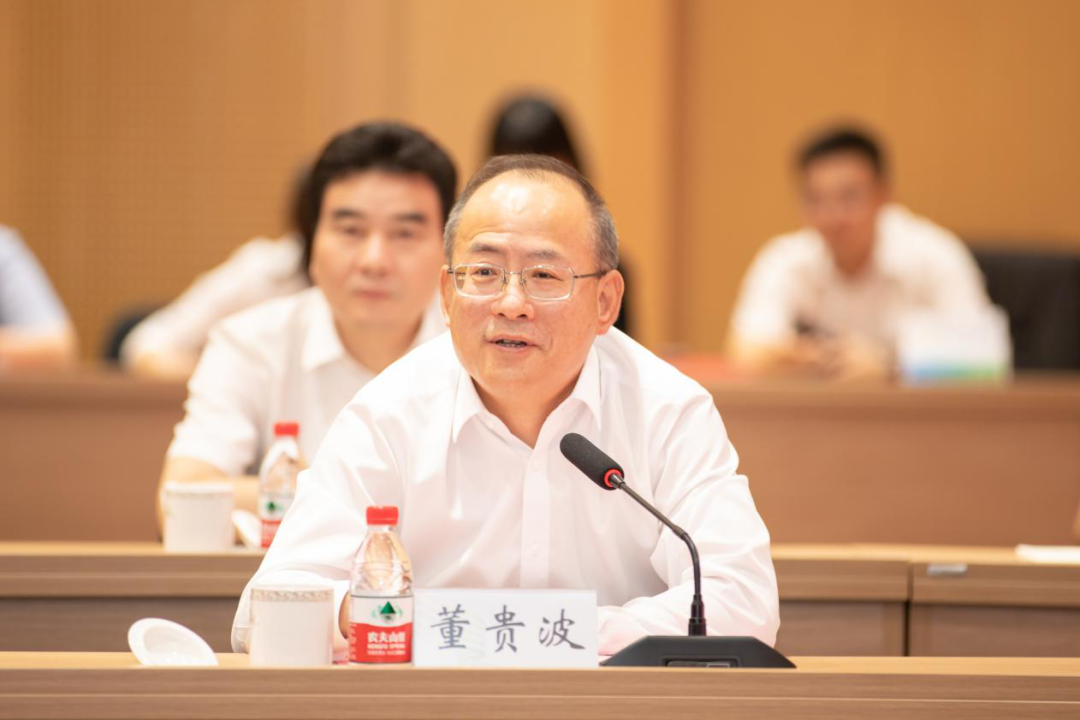 省国资委党委书记、主任董贵波强调:一要优势互补、发展共促,全面服务共同富裕和中国式现代化建设。二要提高站位、展现担当,着力服务自然资源开发利用和生态环境保护。三要合作共赢、成果共享,合力打造省属企业与地方企业合作新范式。