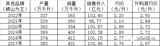 每年基本都是销大于产,不足部分主要由外购成品酒补充。但从外购酒的均价也可以看出,该业务毛利很低,这估计也是管理层在不断缩减崂山品牌啤酒产销量的原因。