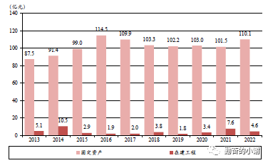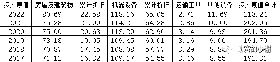 公司固定资产原值有200余亿,主要为房屋及建筑物、机器设备。其中房屋按照20-40年使用年限,机器设备按5-14年使用年限进行折旧。截止2022年,房屋及建筑差不多已经折旧了28%,机器设备折旧了55%。