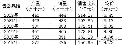 分产品看,崂山品牌的啤酒销量在逐步减少,销售单价则在稳步提升。