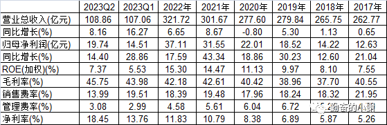公司2017年至2022年,营业收入维持着个位数的小幅增长(复合增速4%),归母净利润则增长了约2倍(复合增速24%)。净利润的提升,主要源于公司近几年毛利率小幅提升(高端产品增加),同时公司销售费率则得到有效降低,从21.95%下降至18.39%(相对营收而言节省了接近20亿的开支)。