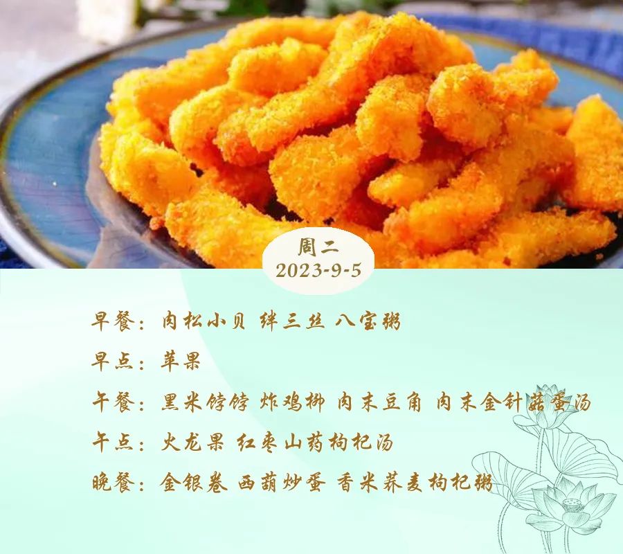 【樾享食光】济水幼教集团西棠观樾幼儿园一周营养食谱(2023年9月1日、9月4日-9月8日)