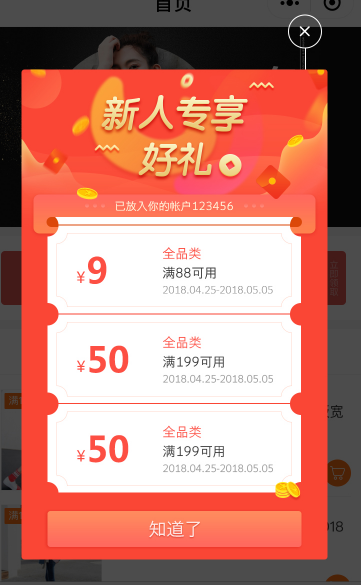 △新客有礼页面展示