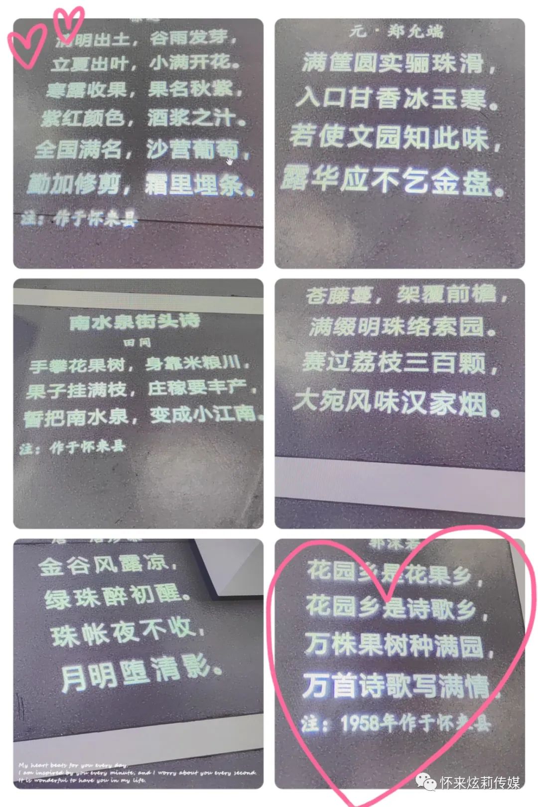 很多同学没有来过世界葡萄酒之窗,当看到水晶之路上留有许多名人赞颂怀来及葡萄的诗歌,忍不住一起朗诵起来。关于赞颂怀来葡萄的诗歌你知道多少,一起来参与吧!