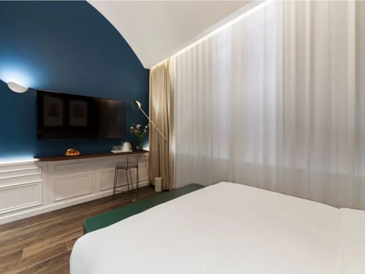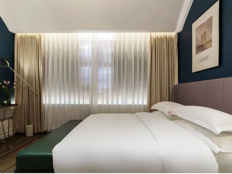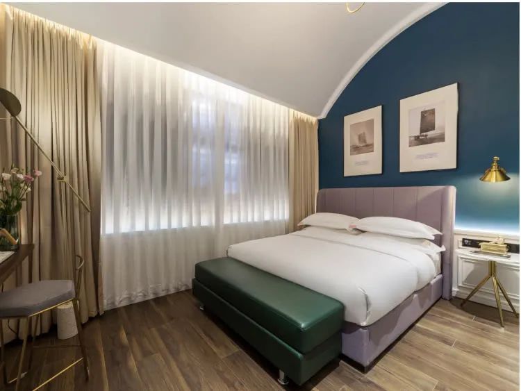 客房修旧如旧,保留了具有厚重历史感的法式内外实木水曲柳窗,延续传承。简约有质感的床品家居,让整个房间浪漫又温柔。躺在柔软如云朵的大床上休息,特别惬意舒适,全身心放松。