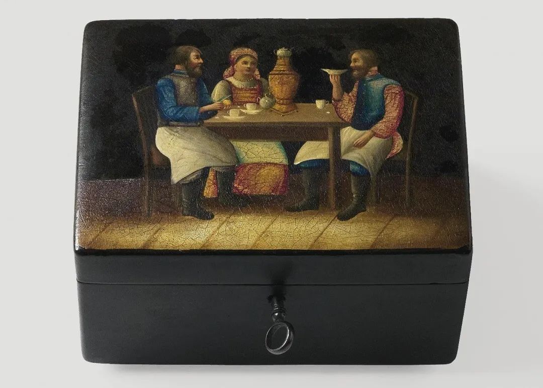 19世纪 漆绘饮茶图盒