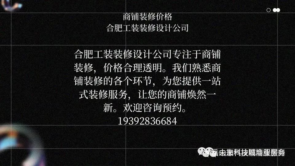 合肥工装装修设计公司专注于商铺装修,价格合理透明。我们熟悉商铺装修的各个环节,为您提供一站式装修服务,让您的商铺焕然一新。欢迎咨询预约。