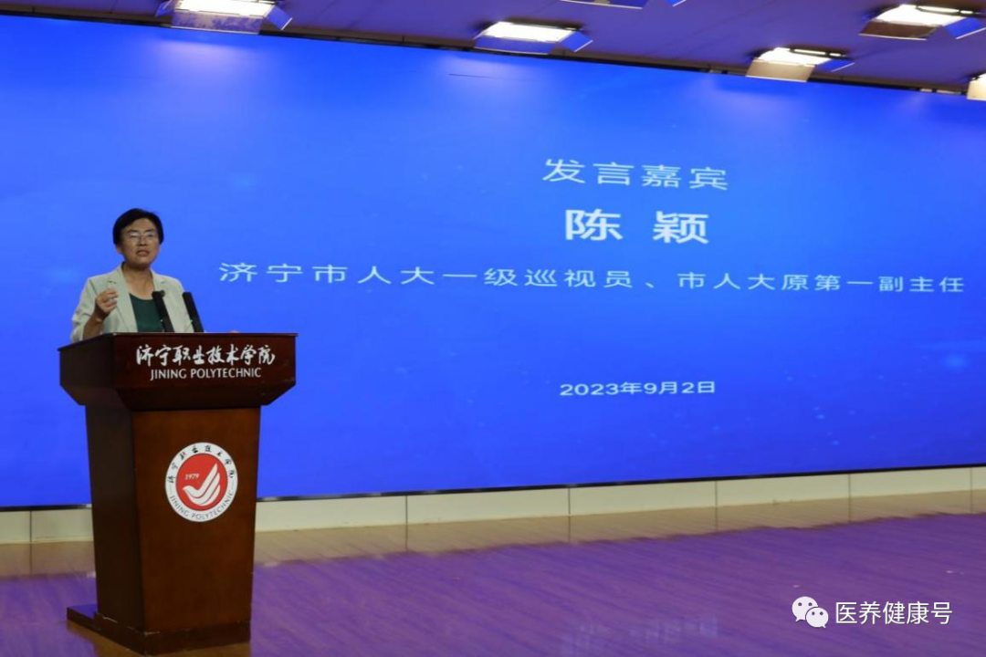 济宁市人大一级巡视员、市人大原第一副主任陈颖发表了讲话,代表市委、市政府向大会的顺利召开表示热烈的祝贺。她表示,科技创新是济宁新动能的关键,强调了职业教育在培养多样化人才、传承技术技能、促进就业创业中的继续发挥更大的作用。陈颖号召大家共同努力,深入学习贯彻落实习近平新时代中国特色社会主义思想,为职业教育与产业发展共融共长探索新路径,推动区域职业教育高质量发展,不断为中国特色职业教育体系建设改革做出新的贡献。