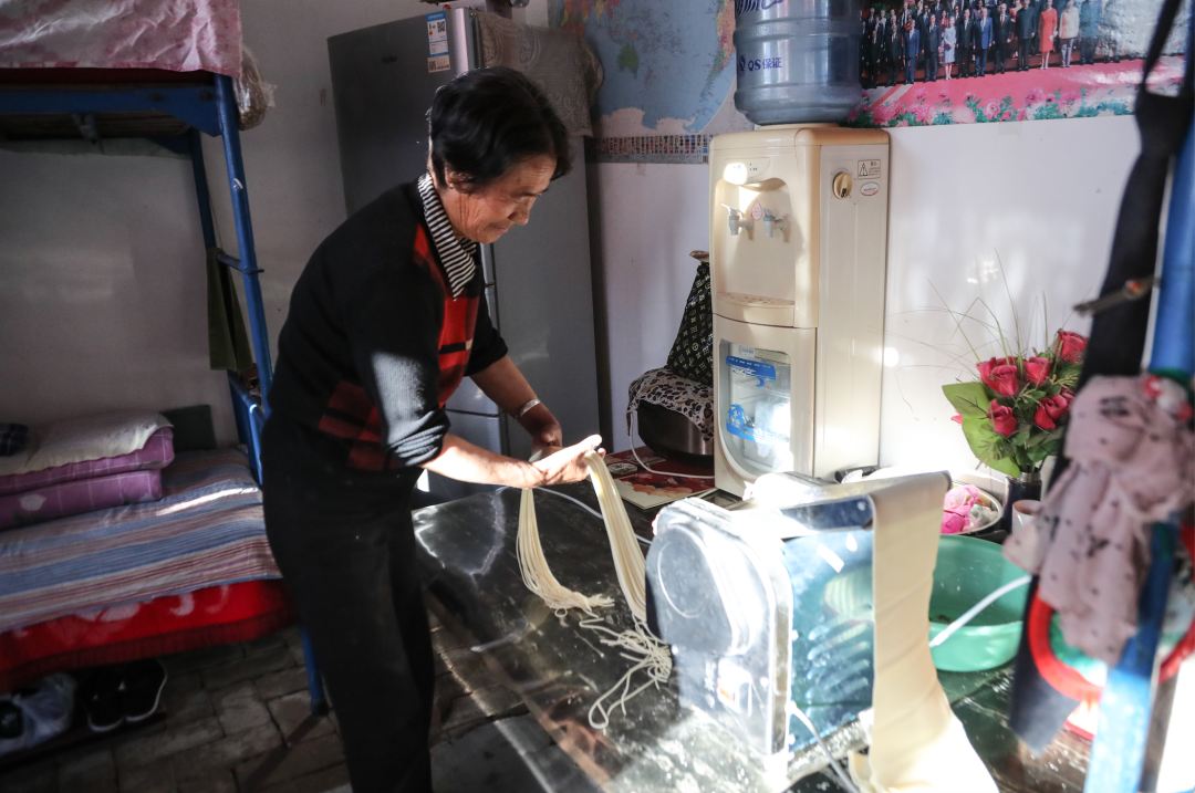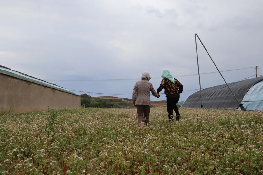 陈志强老人家里的上房是同治年间修建的老宅,陈志强(73岁)和老伴李收割(67岁)老两口住在这里。老人家和老伴一起种了半亩洋芋、半亩玉米和一亩麦子,不大的两亩地,按照植物生长的时间、需要的空间及作物的特性种植,在洋芋、玉米中间,间种了生菜、油麦菜、辣椒、甜菜、茄子、豆角等蔬菜。陈爷爷爱吃瓜子,老伴还在玉米地里给他种了几株向日葵,满足了老两口日常蔬菜的需要。