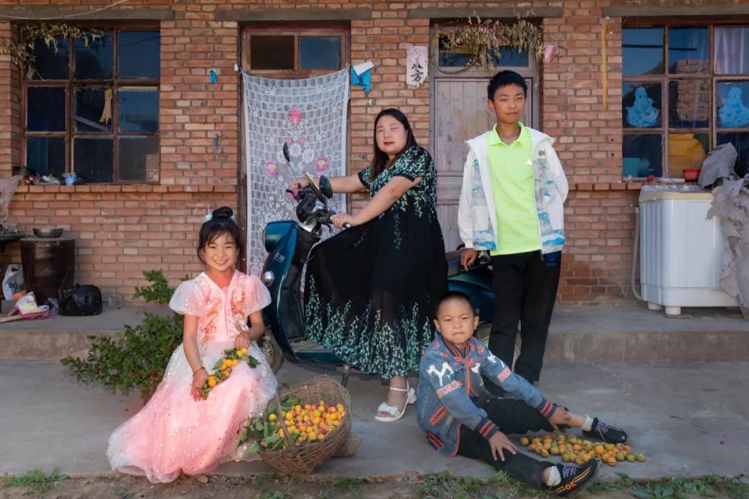 穿戴时髦的陈堡人。妈妈陈佳琪,儿子张文浩,女儿张紫涵,亲戚家小朋友史文晨。他家的电动车也很漂亮,妈妈和孩子都打扮得时髦。