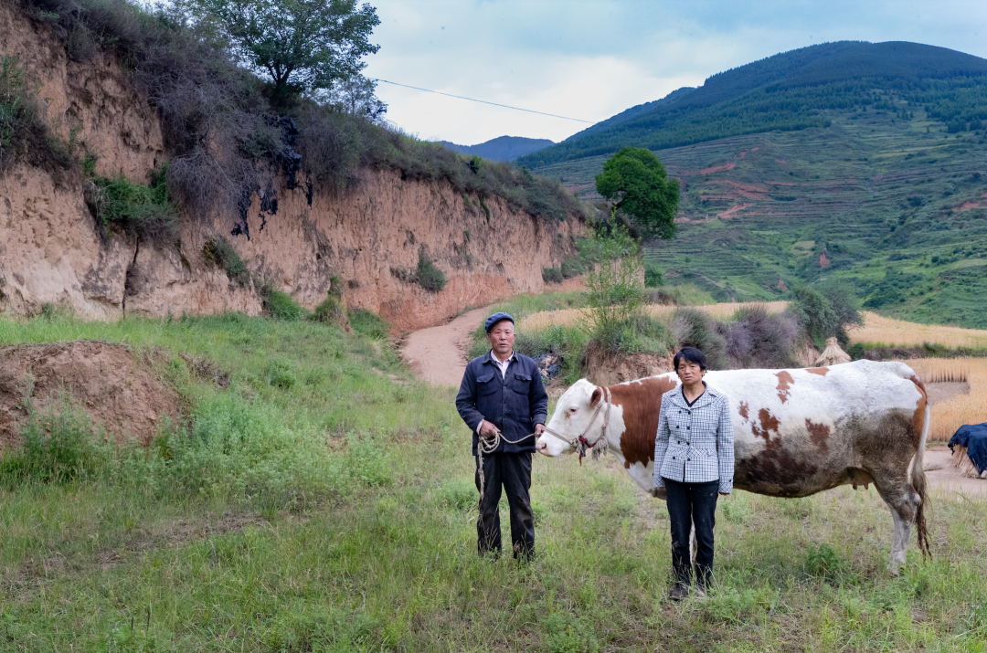 王建设家庭,陈堡村三社。王建设62岁,苏绿凤55岁。他俩在山的最高处养了两头大黄牛,听说牛是天津河西区扶贫送给低保户的。